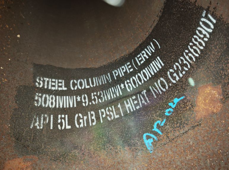 Pipes (API 5L-GR.B SCH-STD SMLS) - OD500mm x 9.53mm x 120.7kg/m | 6m x 6pcs. (4.3452mT).